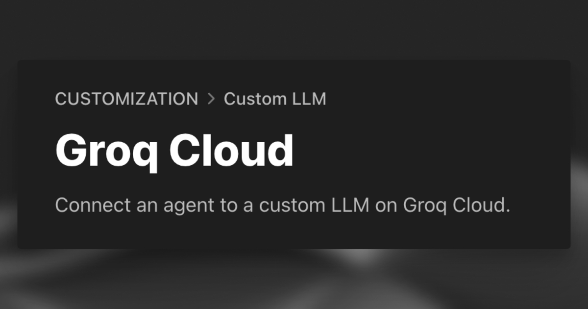 Connect an agent to a custom LLM on Groq Cloud.